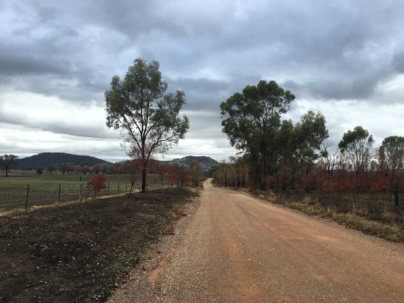 Left - I never thought I'd have to worry about floods at this time of the year! Centre - Leaving the historic town of Chiltern. Right - The road to Wodonga, recently ravaged by bushfires.